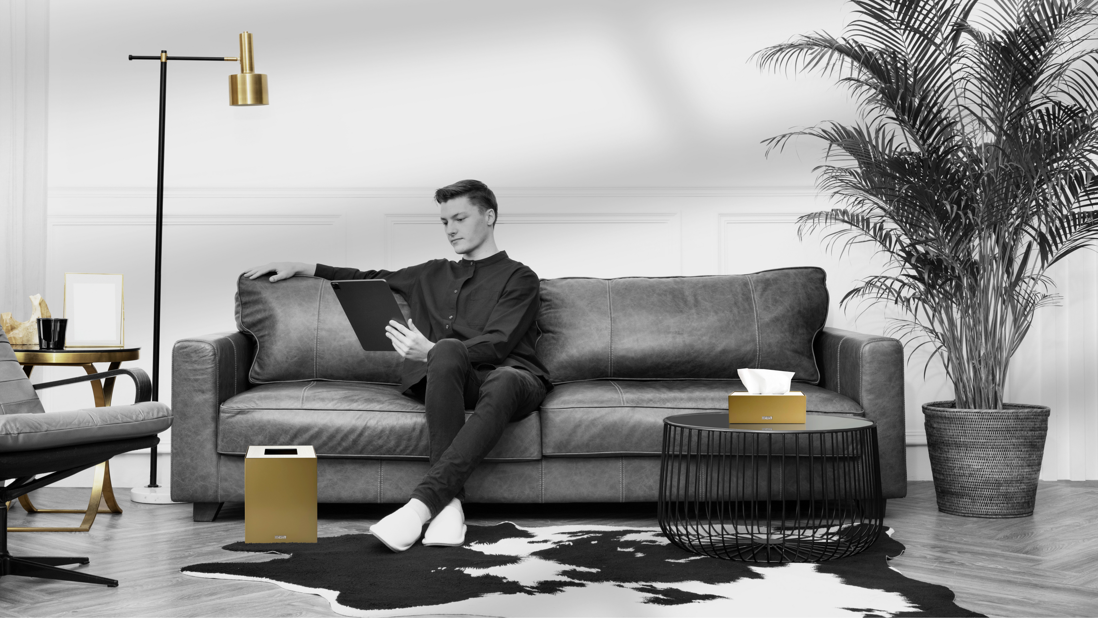 Black Metal Leather Lid Set