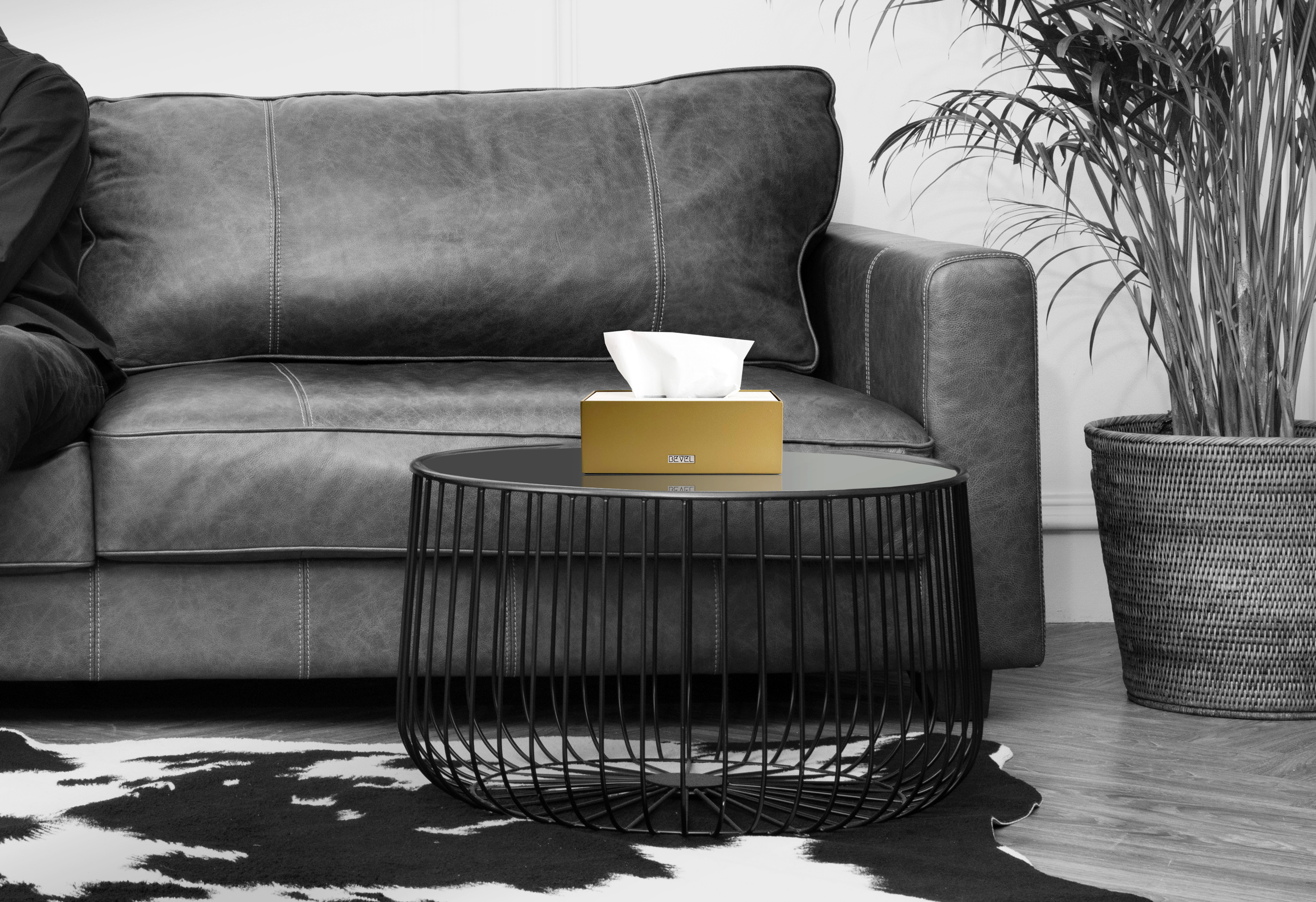 Black Metal Leather Lid Set